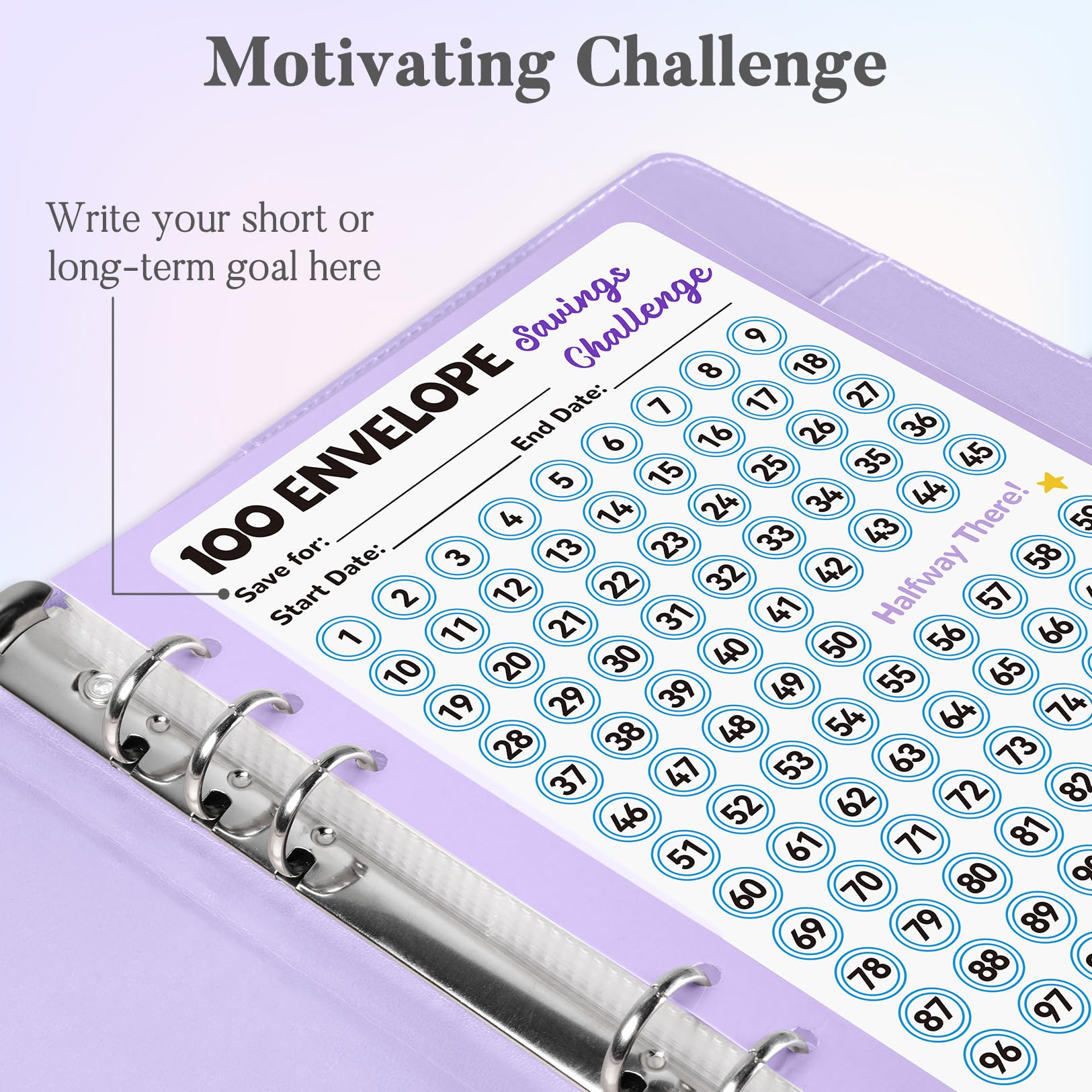 Easy Saving Process: 1.Confirm the cash you want to save. 2.Put the money into the corresponding envelope. 3.Mark the corresponding number on the challenge tracker. At the end of the challenge you will have $5050, you can put it into your savings account for specific savings purposes like down payment, family emergency fund, car loan, travel funds, tax account,etc.