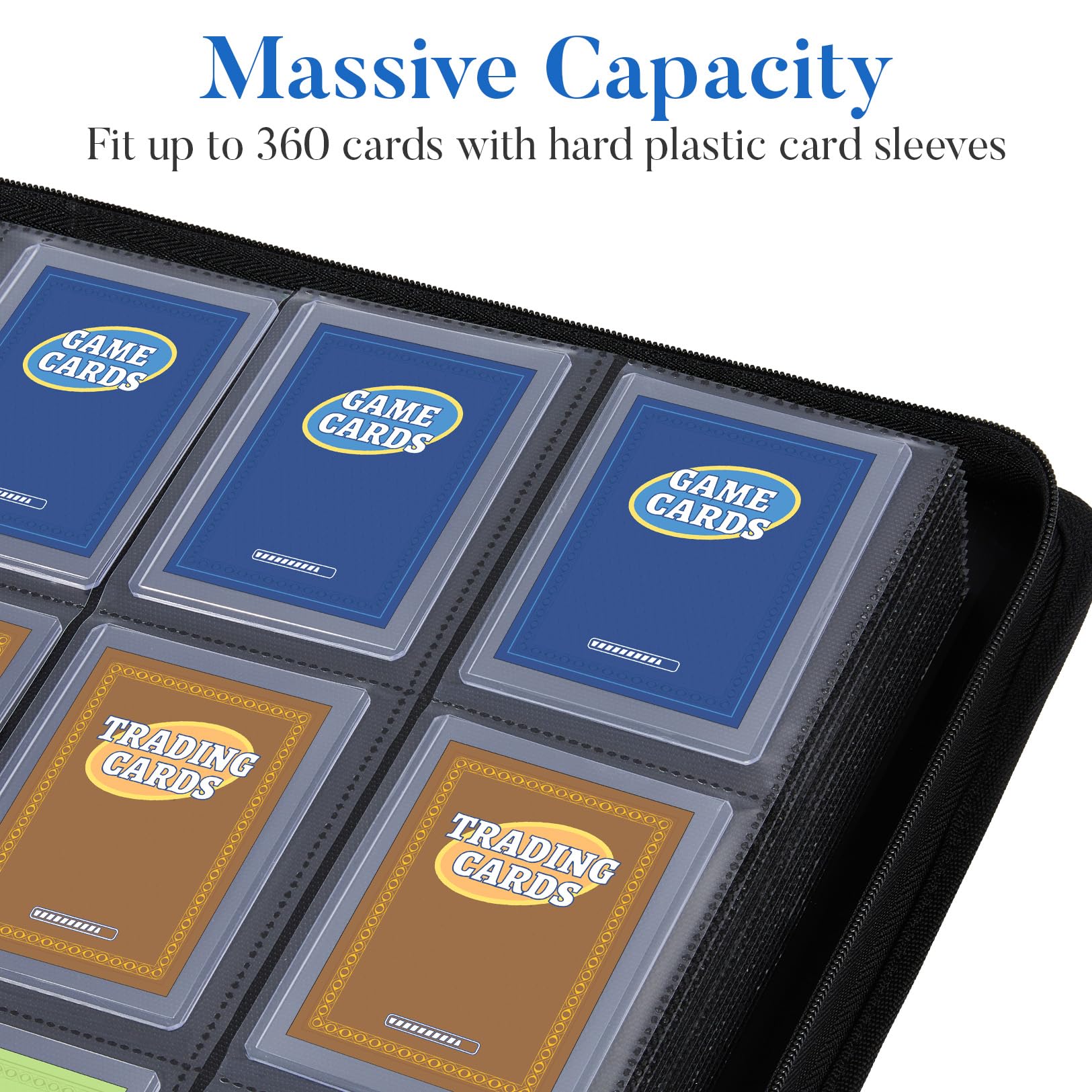 Larger Capacity: This card binder securely holds up to 360 of your most prized cards. Pocket Size: 3.4" x 4.3", precisely sized to fit cards with hard card sleeves for double protection. Perfect for trading cards, sports cards and more